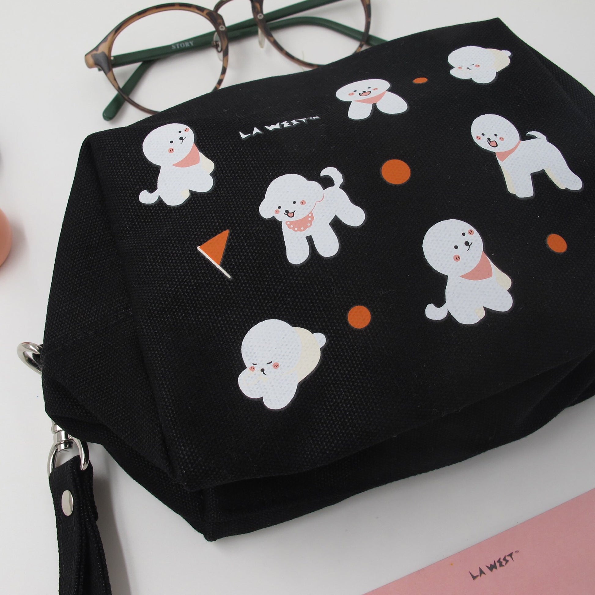 This adorable cosmetic bag, featuring cute dogs, is perfect for all pet lovers!