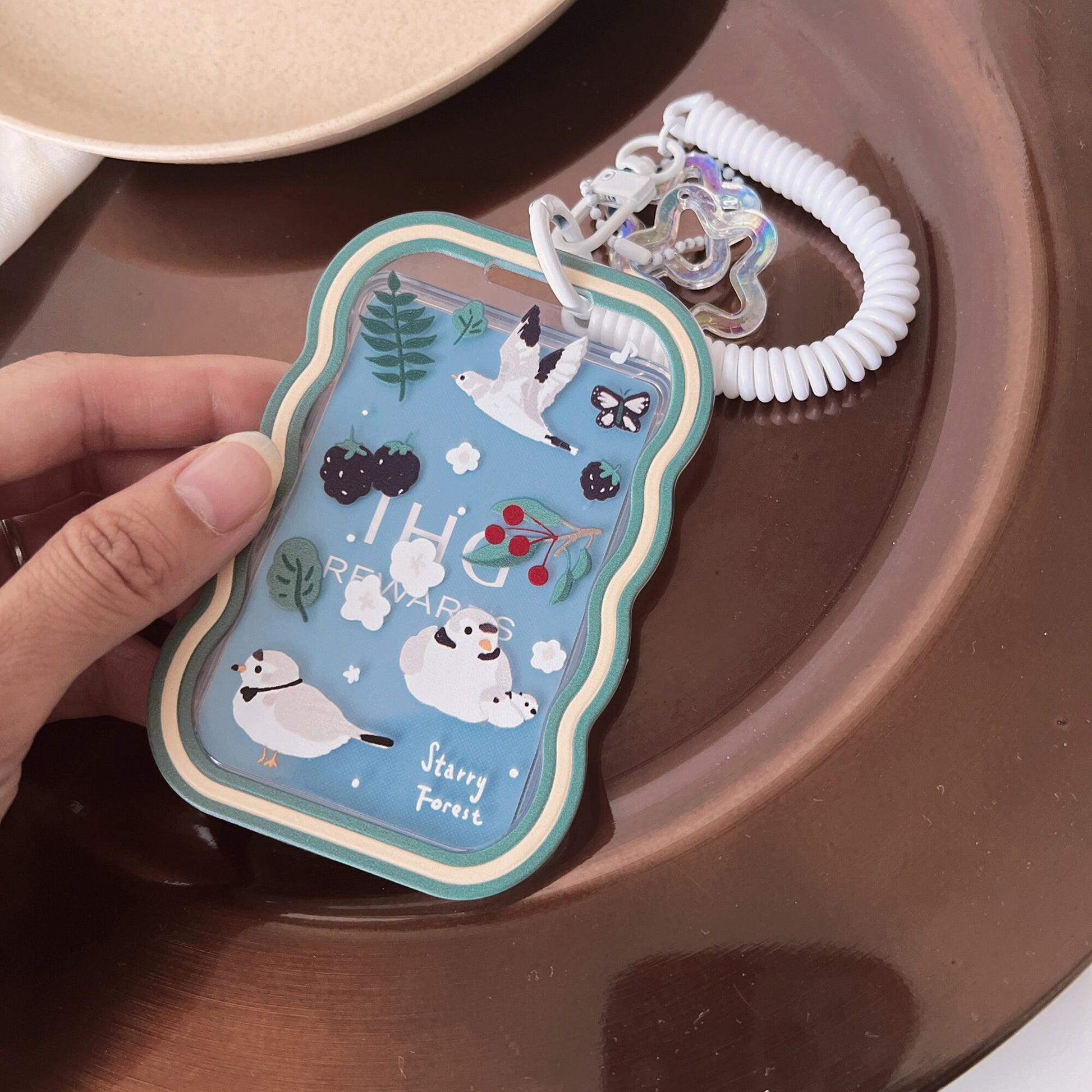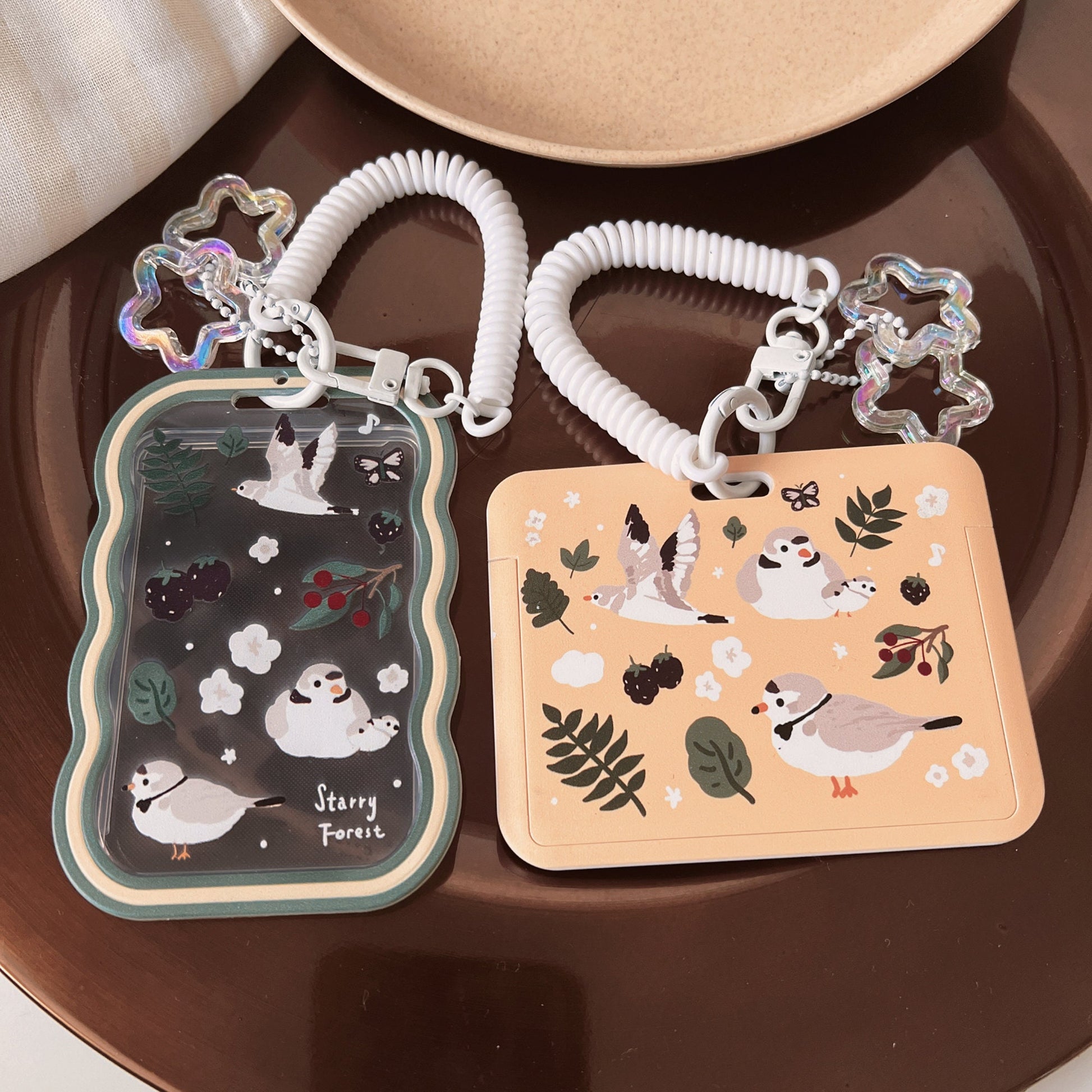🐦 Starry Forest Cute Birds ID Badge Card Holder with Lanyard and Keychain