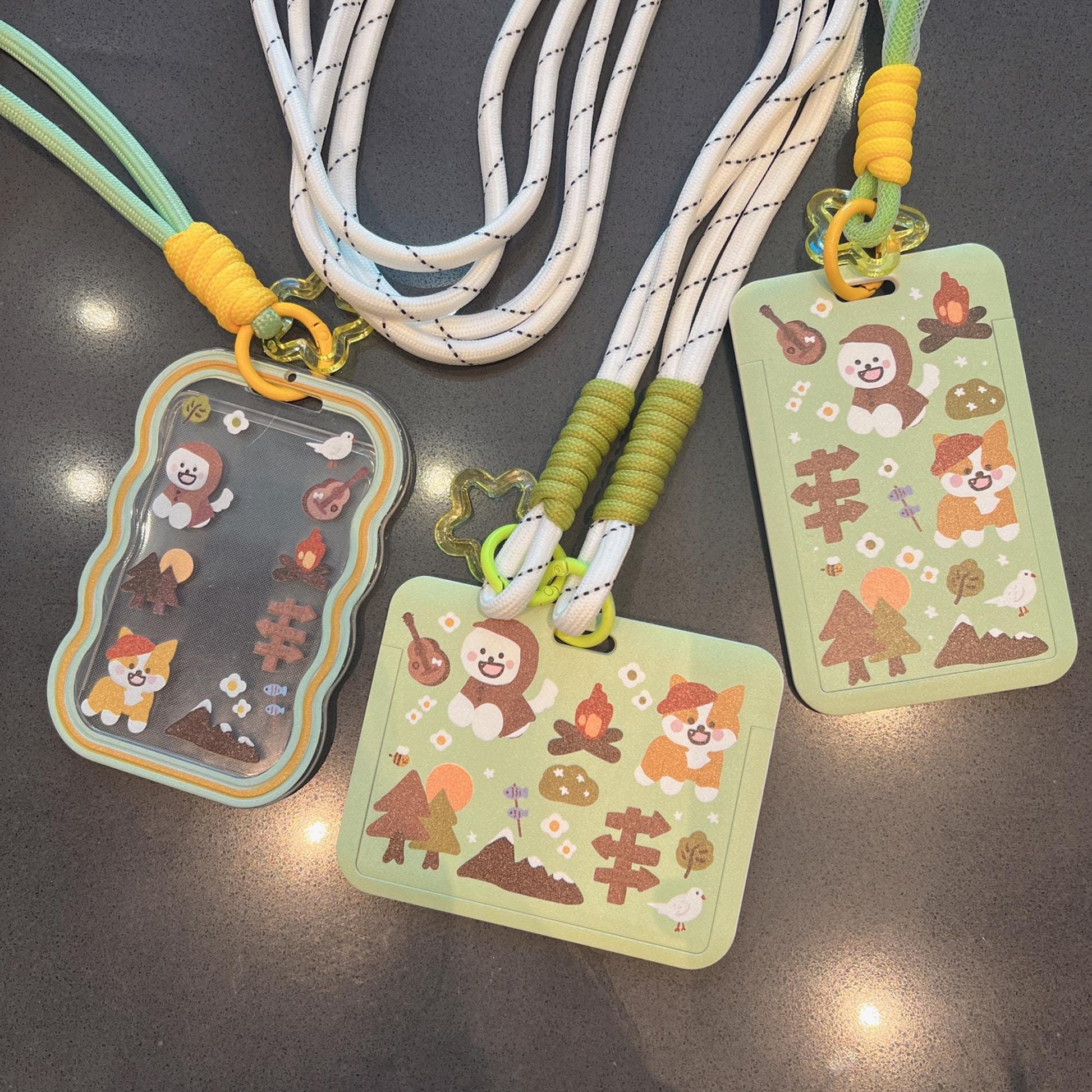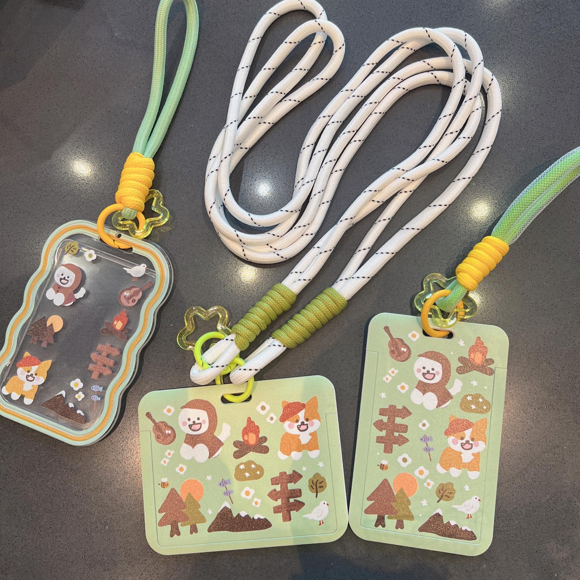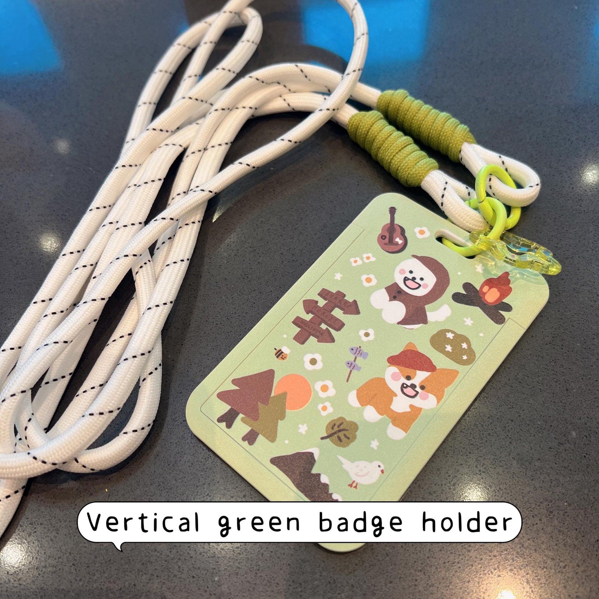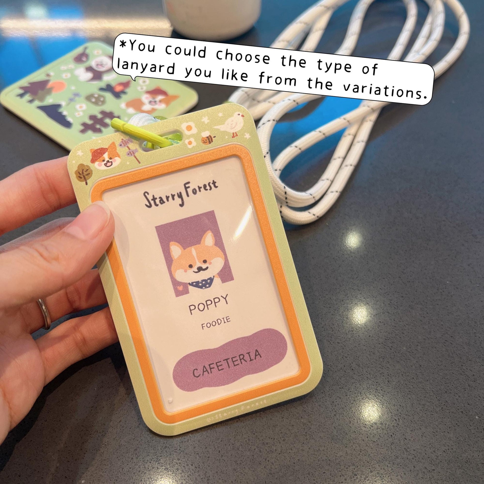 ⛺️ Starry Forest Camping Dogs Green ID Badge Card Holder with Lanyard & Keychains