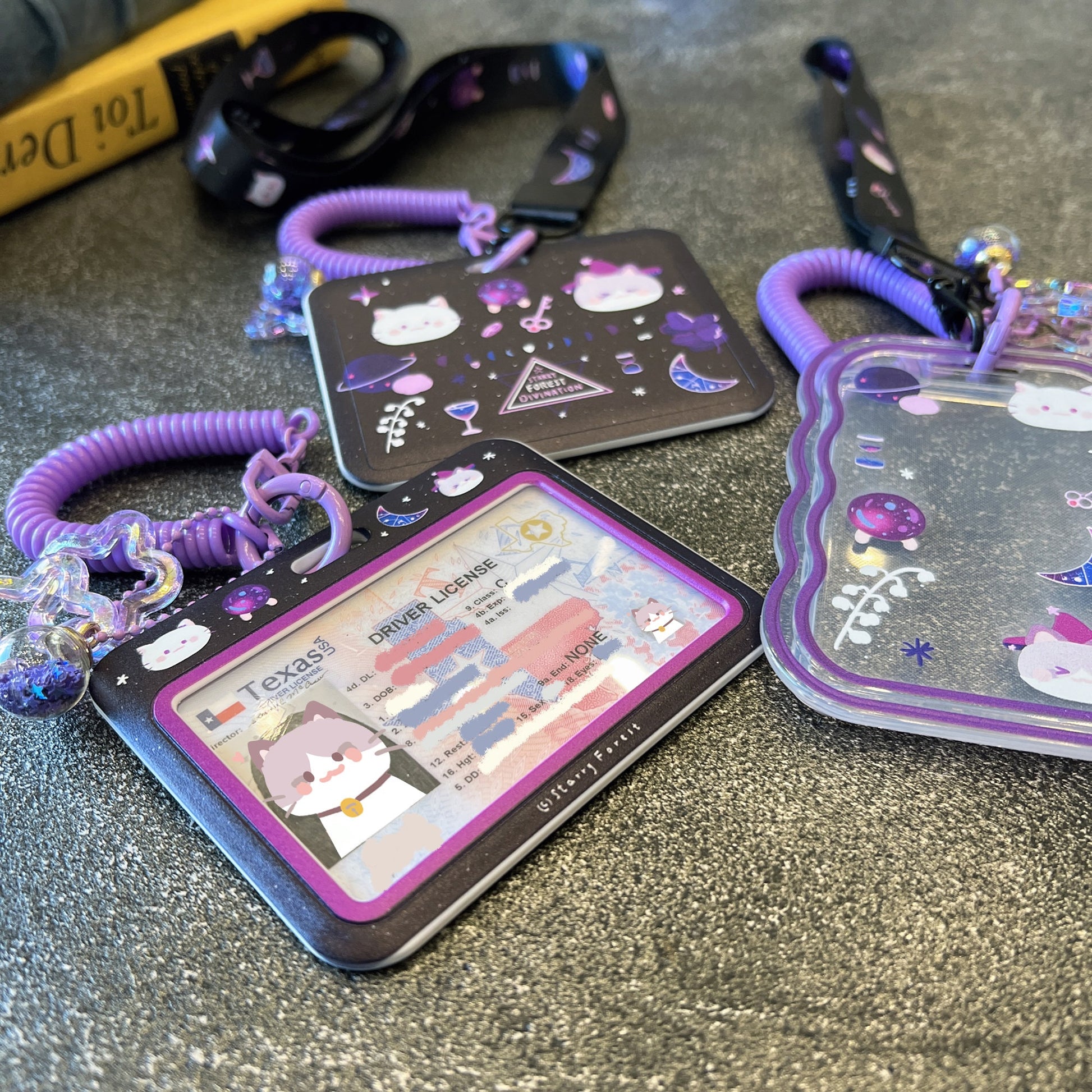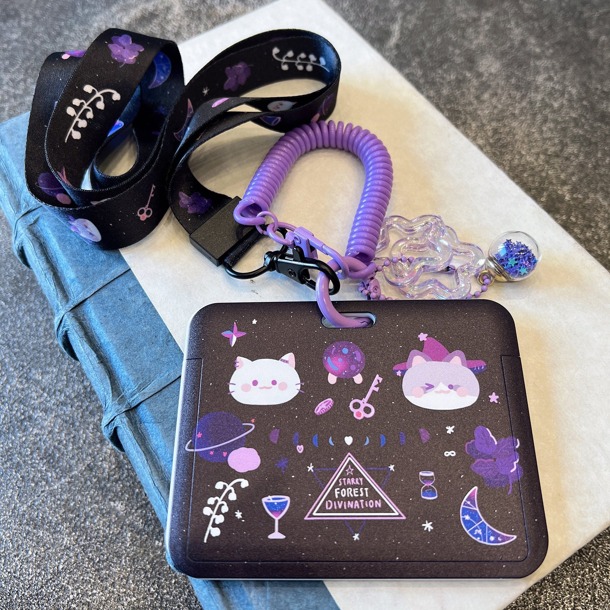 🔮 Starry Forest Cute Ragdoll Cat Divination ID Badge Card Holder with Lanyard & Keychains