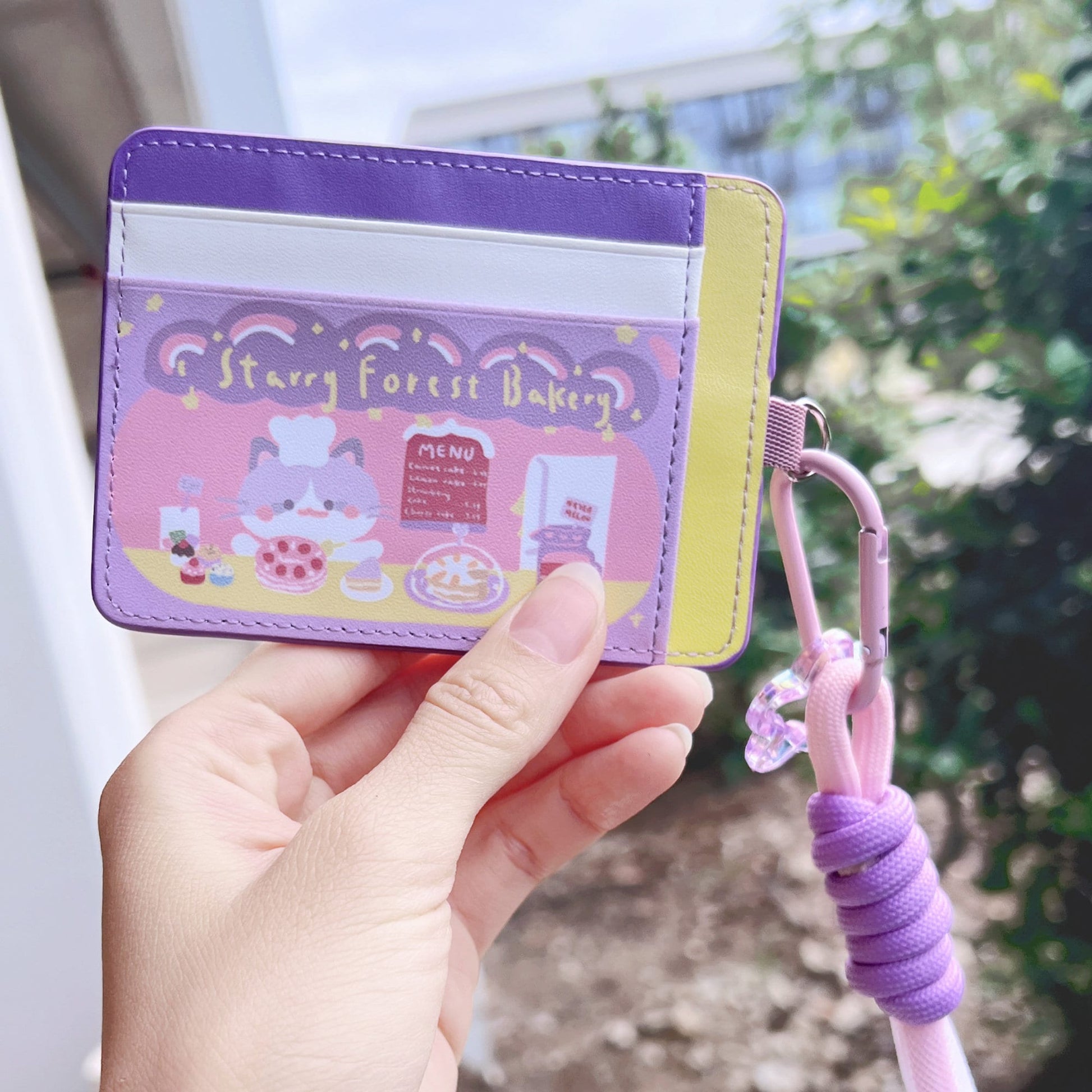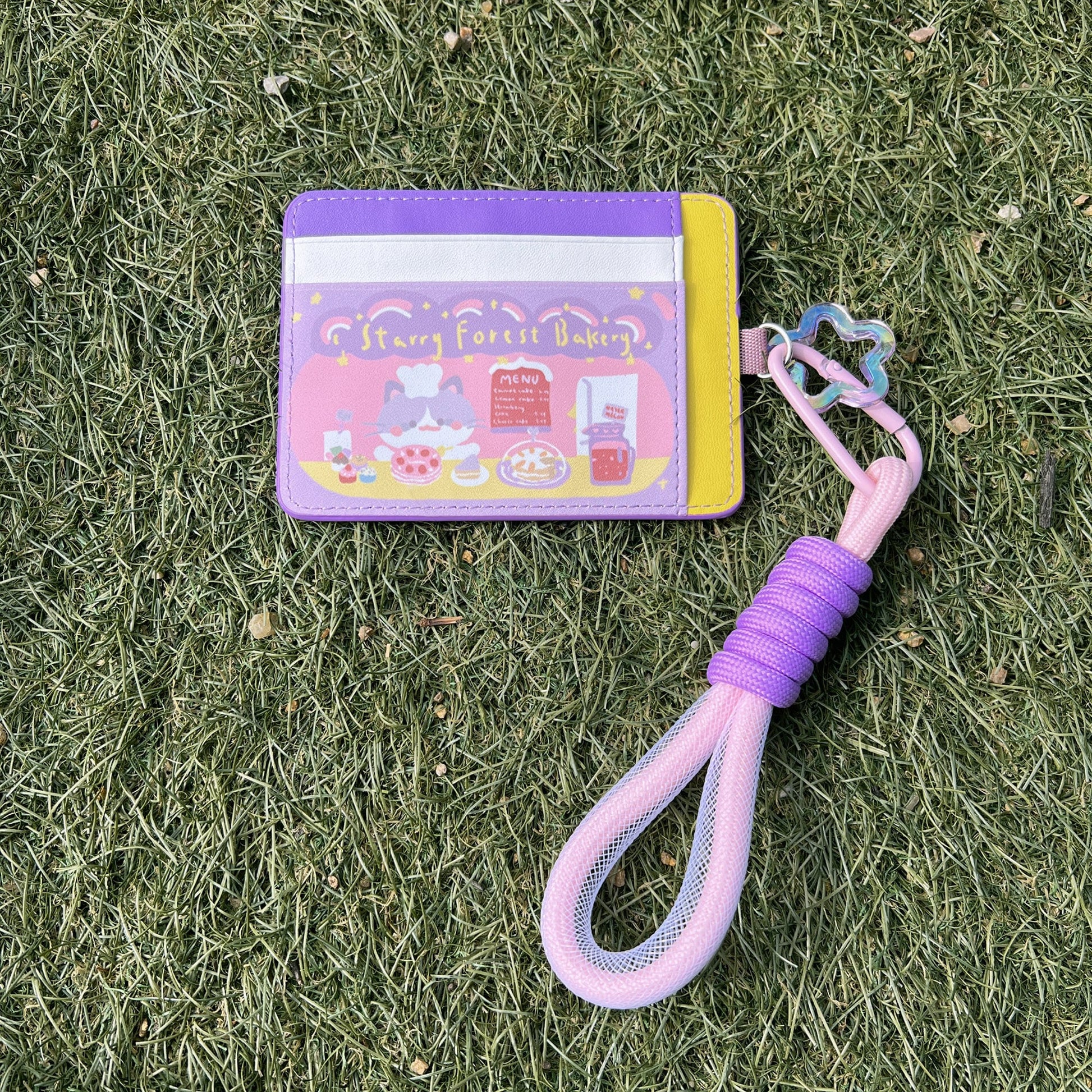 🐾 Starry Forest Cute PU Leather Card Holder with Wristlet and Keychain