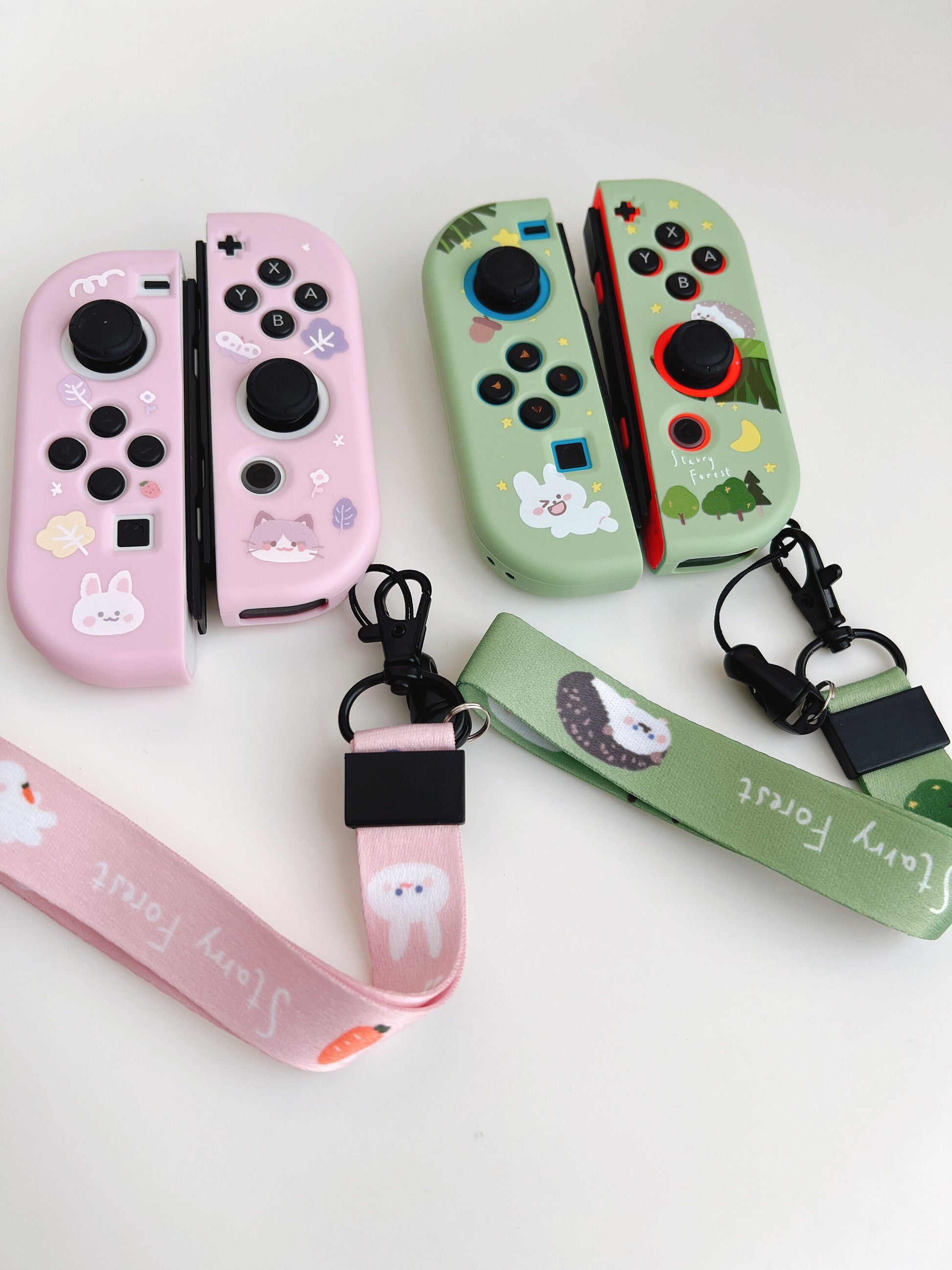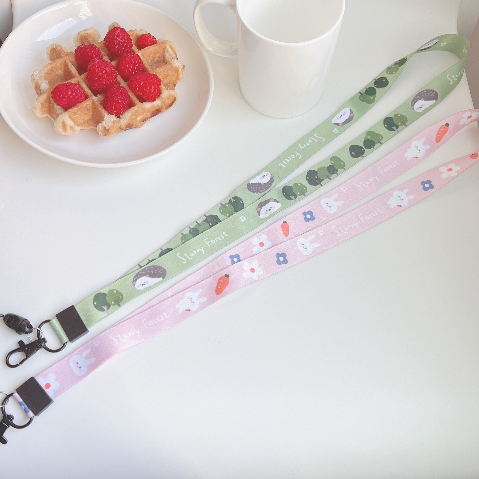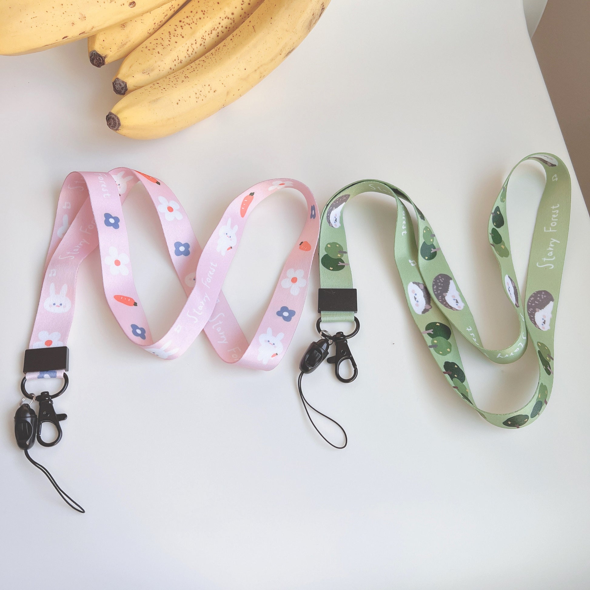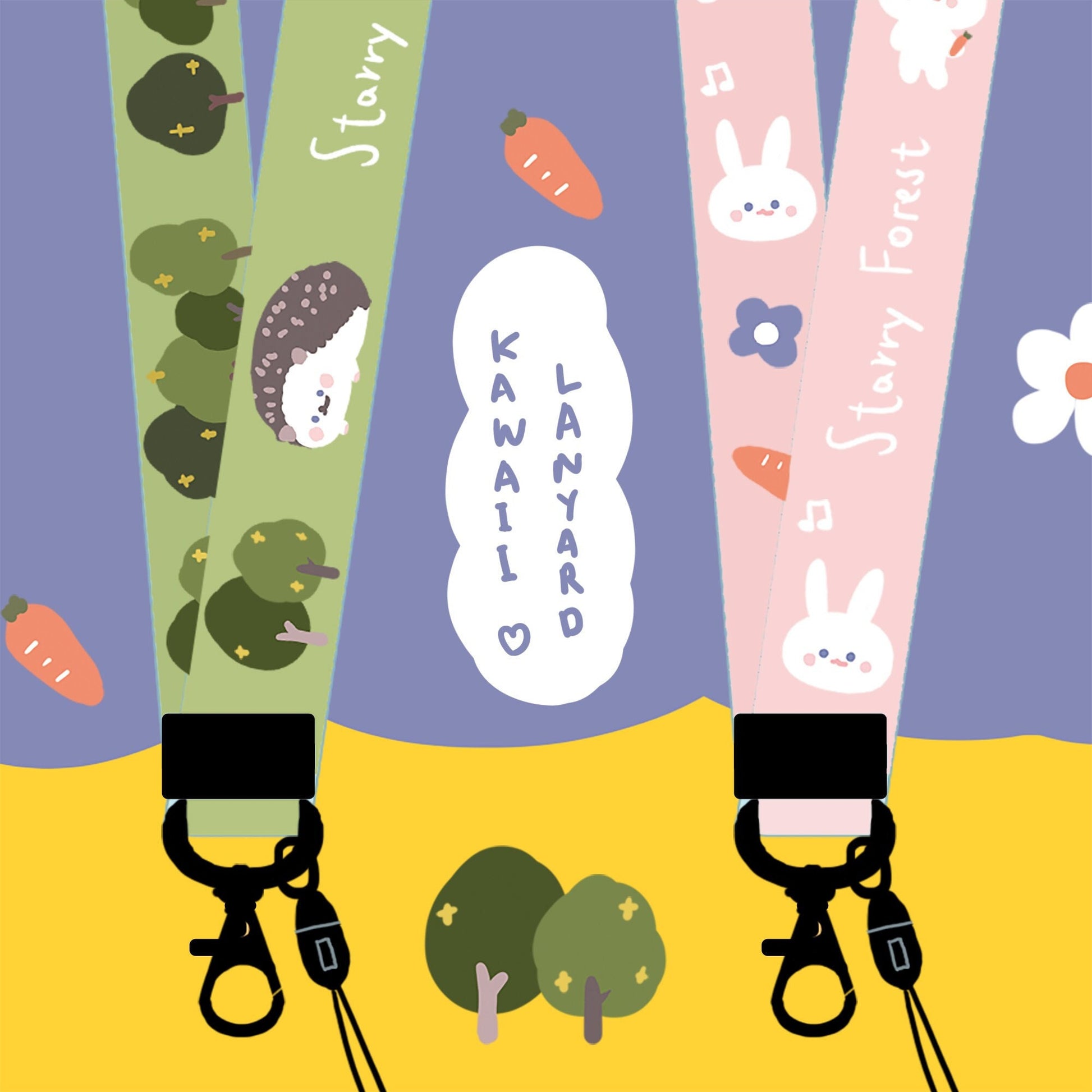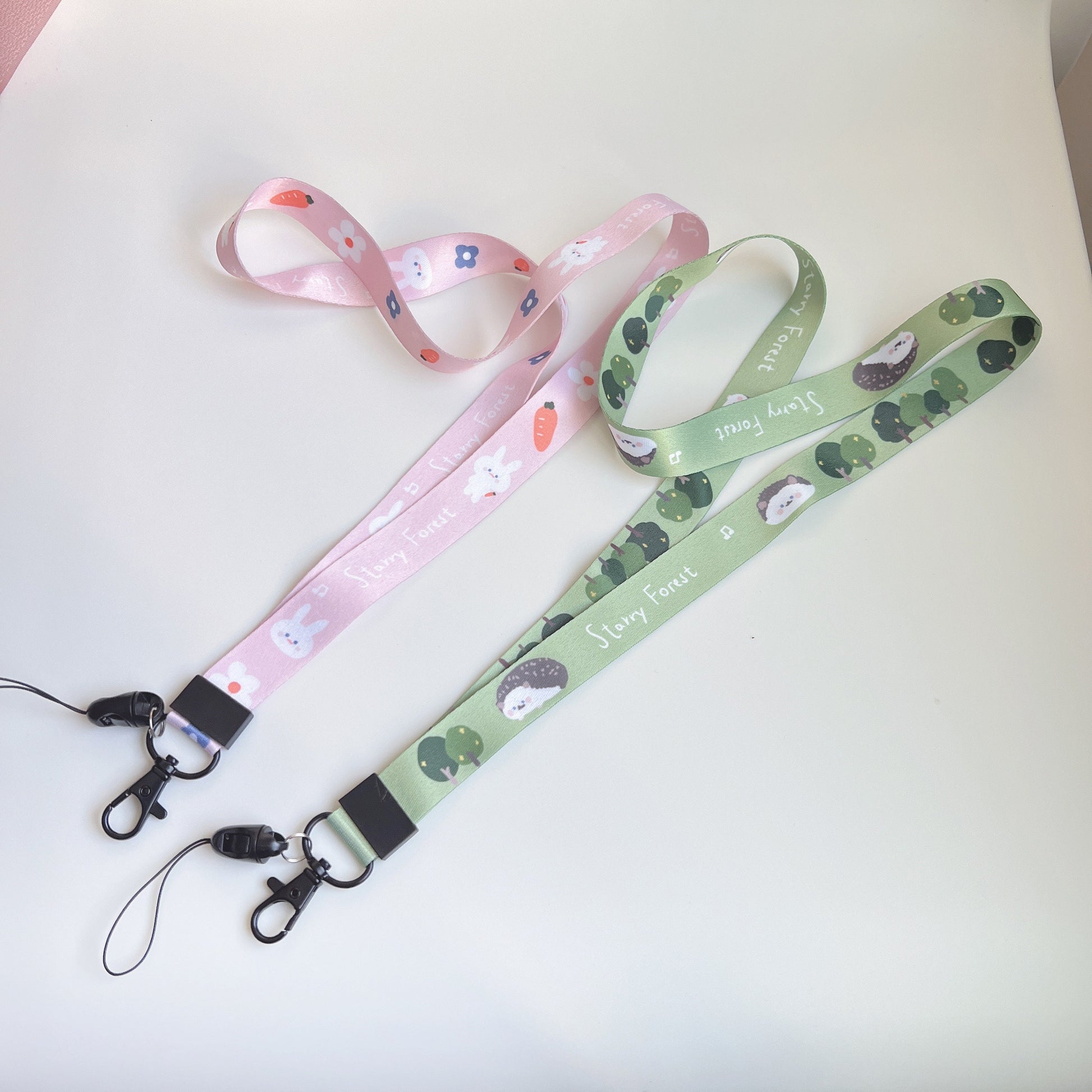 🐰 Starry Forest Cute Hedgehog & Rabbit Lanyard