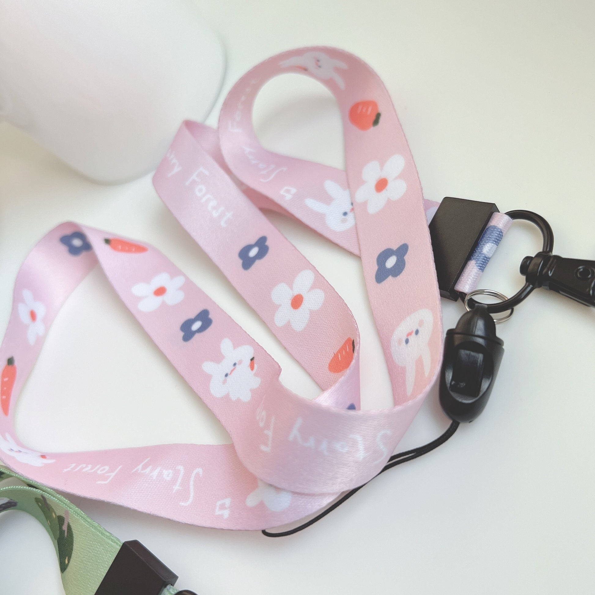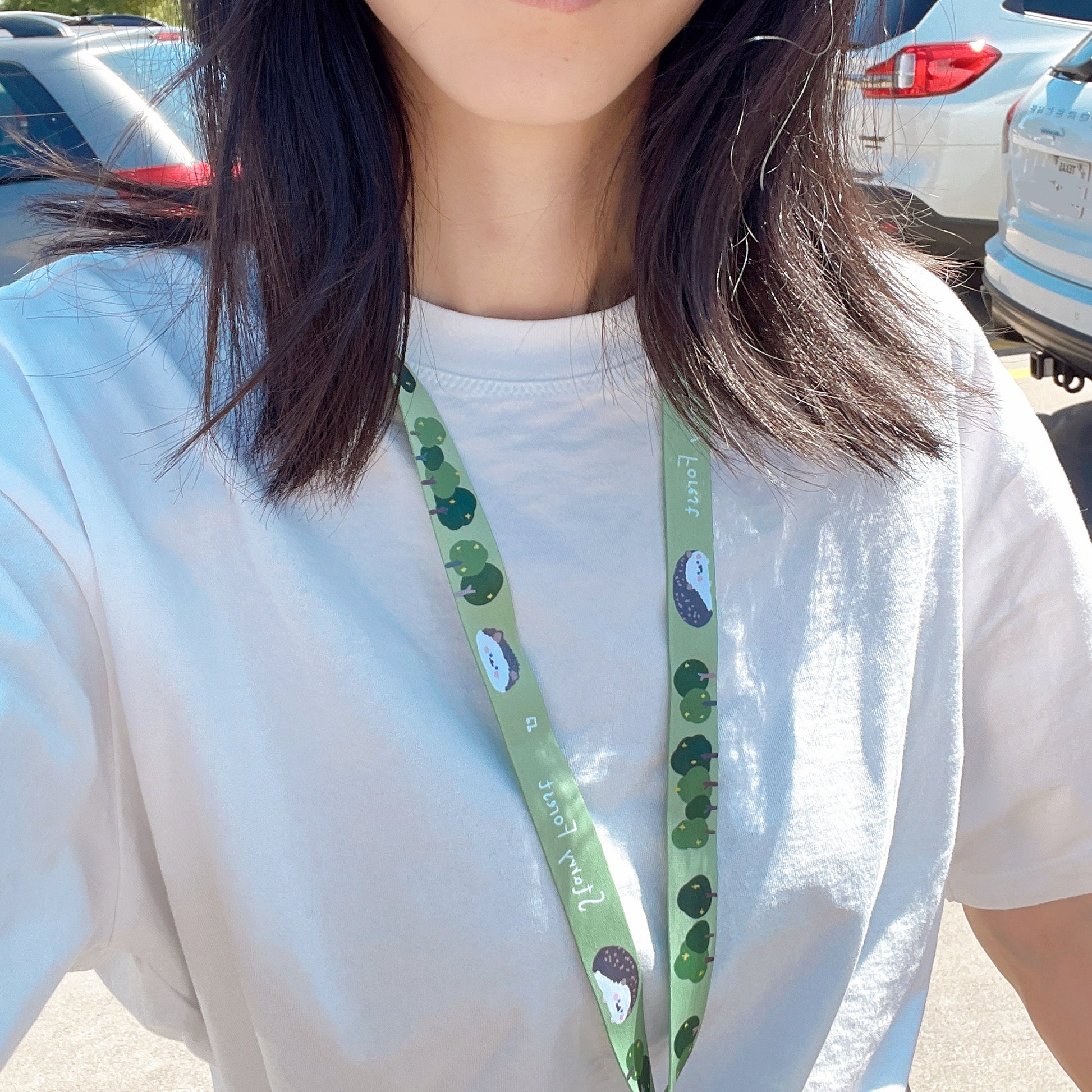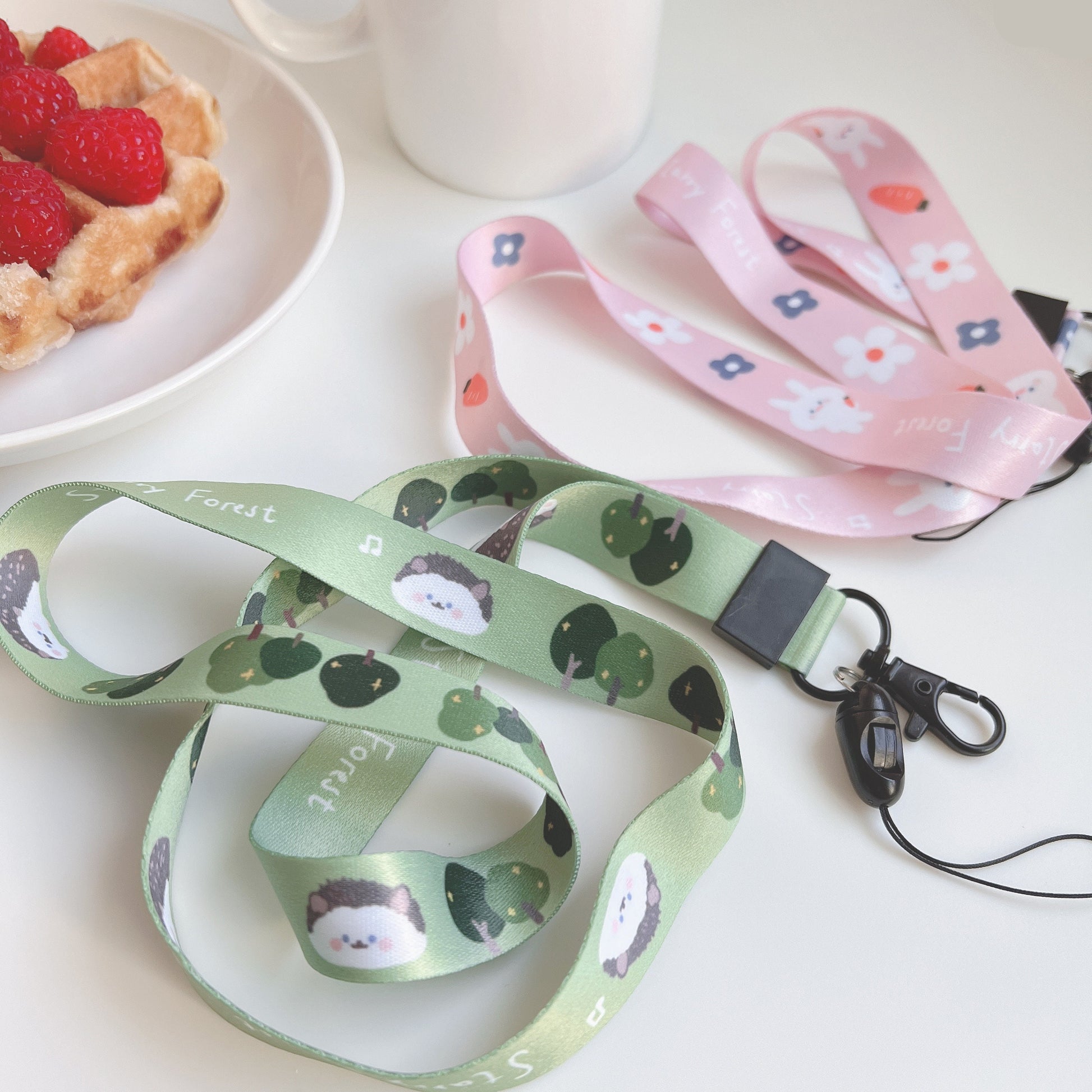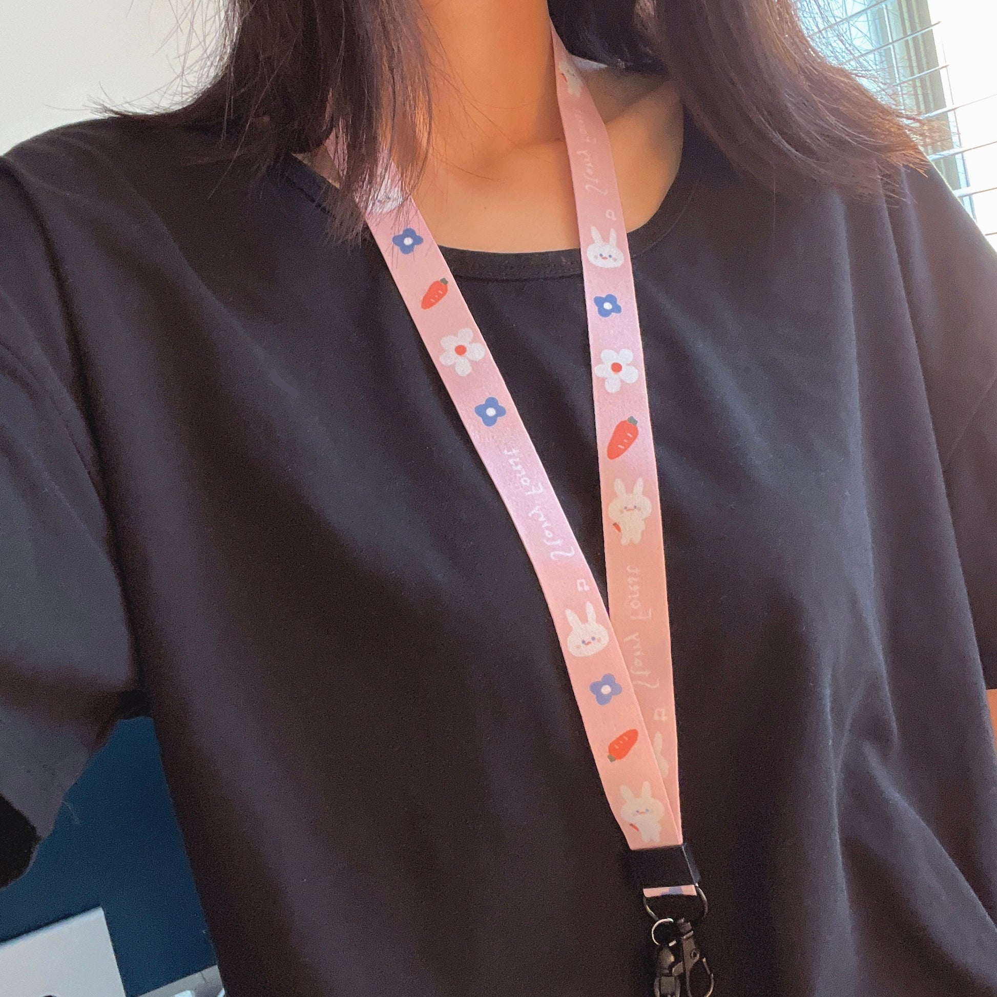 This lanyard features adorable hedgehog and rabbit characters, digitally printed on durable material that won’t fade in water. The necktie-style design is soft and gentle on the skin—comfortable enough for all-day wear.