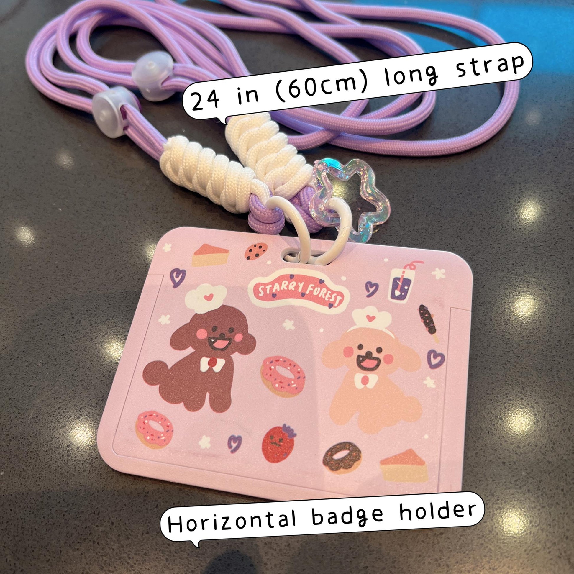 Add a sweet touch of charm to your daily routine with this originally illustrated ID card holder featuring adorable poodle bakery designs in soft purple and pink hues. Perfect for teachers, nurses, students, and office workers looking for a fun yet practical accessory!