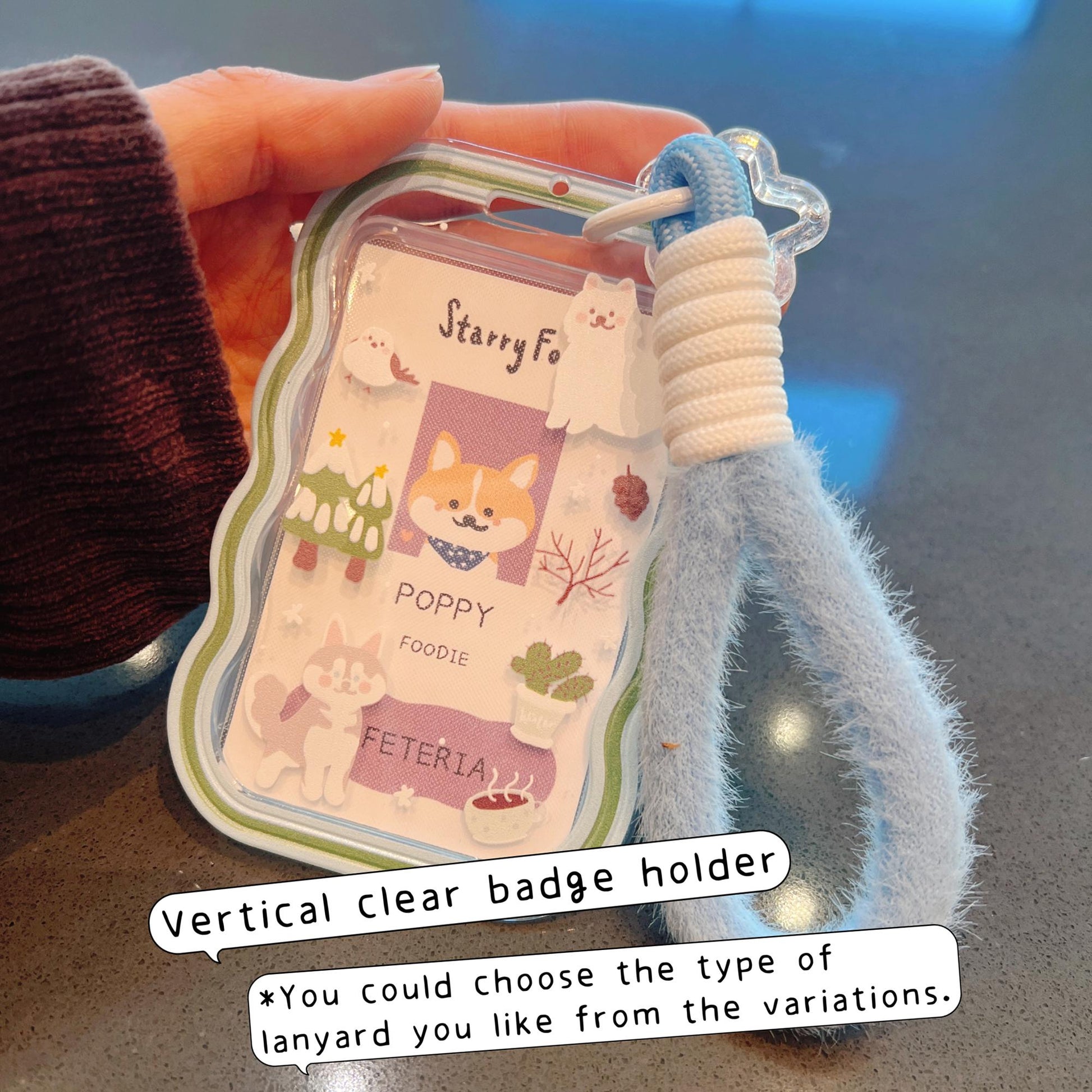 Material: Durable plastic holder with soft fabric lanyard